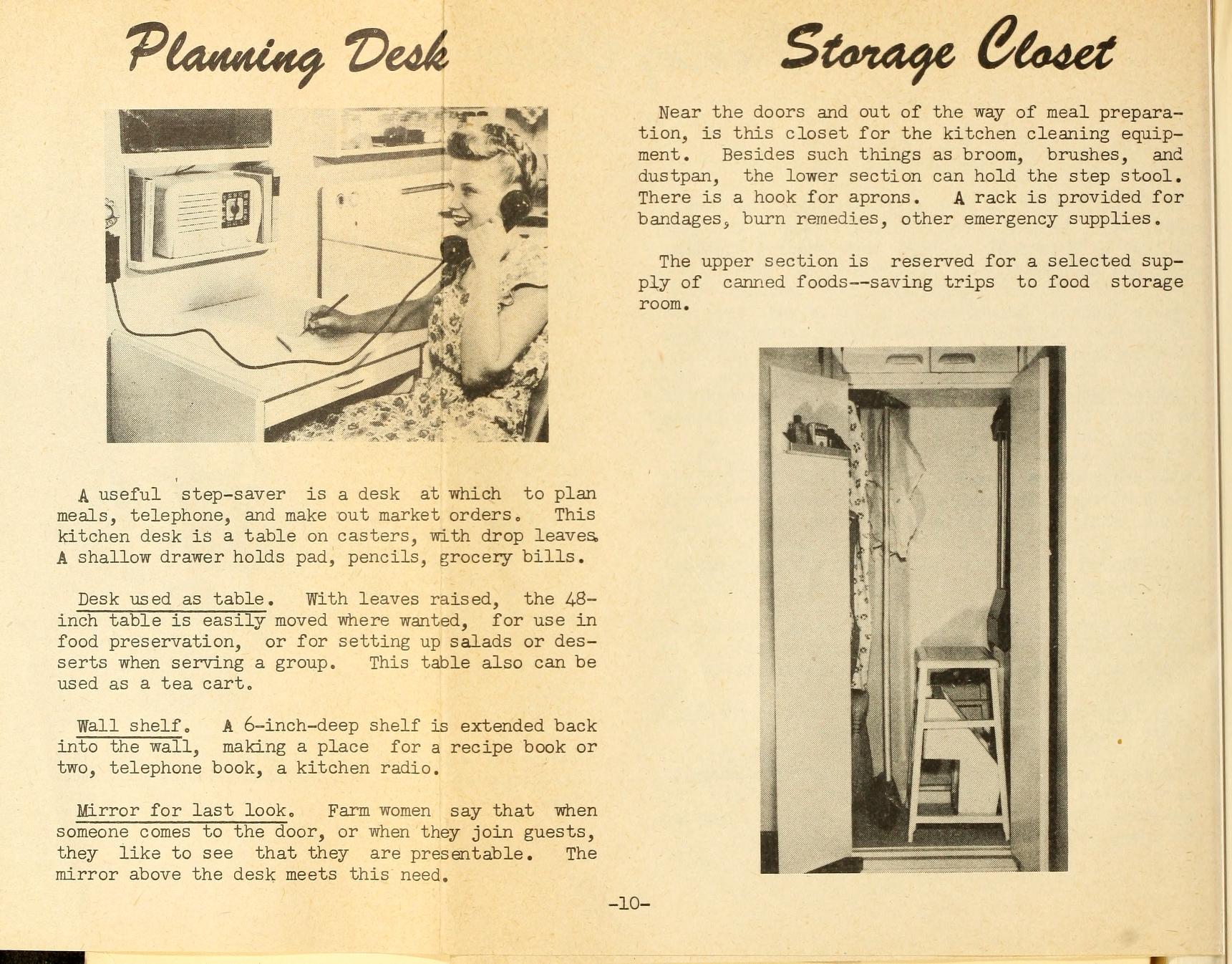 Maximum convenience for the homemaker at her work is the aim of this step-saving kitchen, planned primarily for the farm home. It was designed in housing and household equipment laboratories of the Bureau of Human Nutrition and Home Economics.
