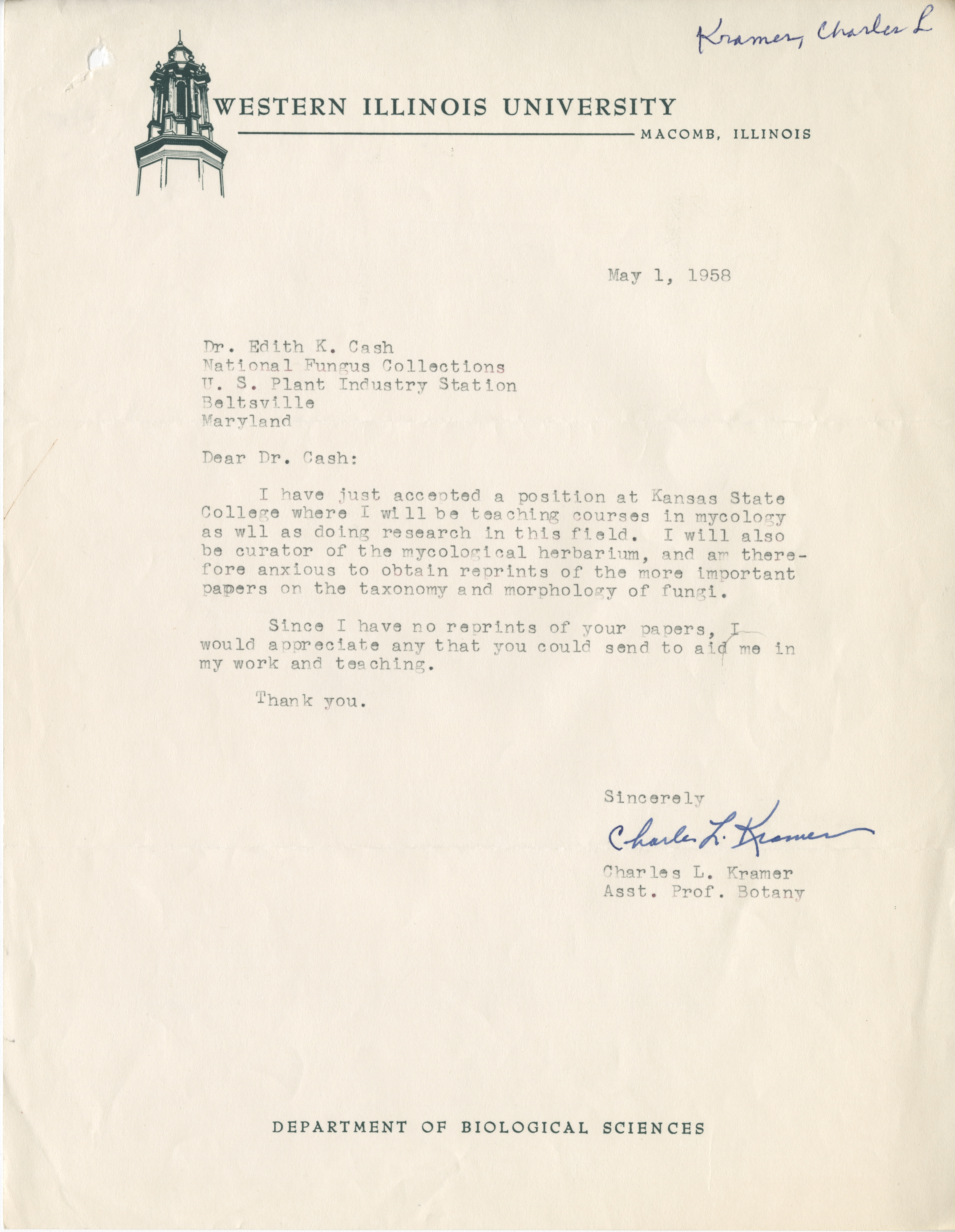 Unknown. “Handwriting sample: Charles L. Kramer.” Special Collections, USDA National Agricultural Library. Accessed December 9, 2025, https://www.nal.usda.gov/exhibits/speccoll/items/show/11485.